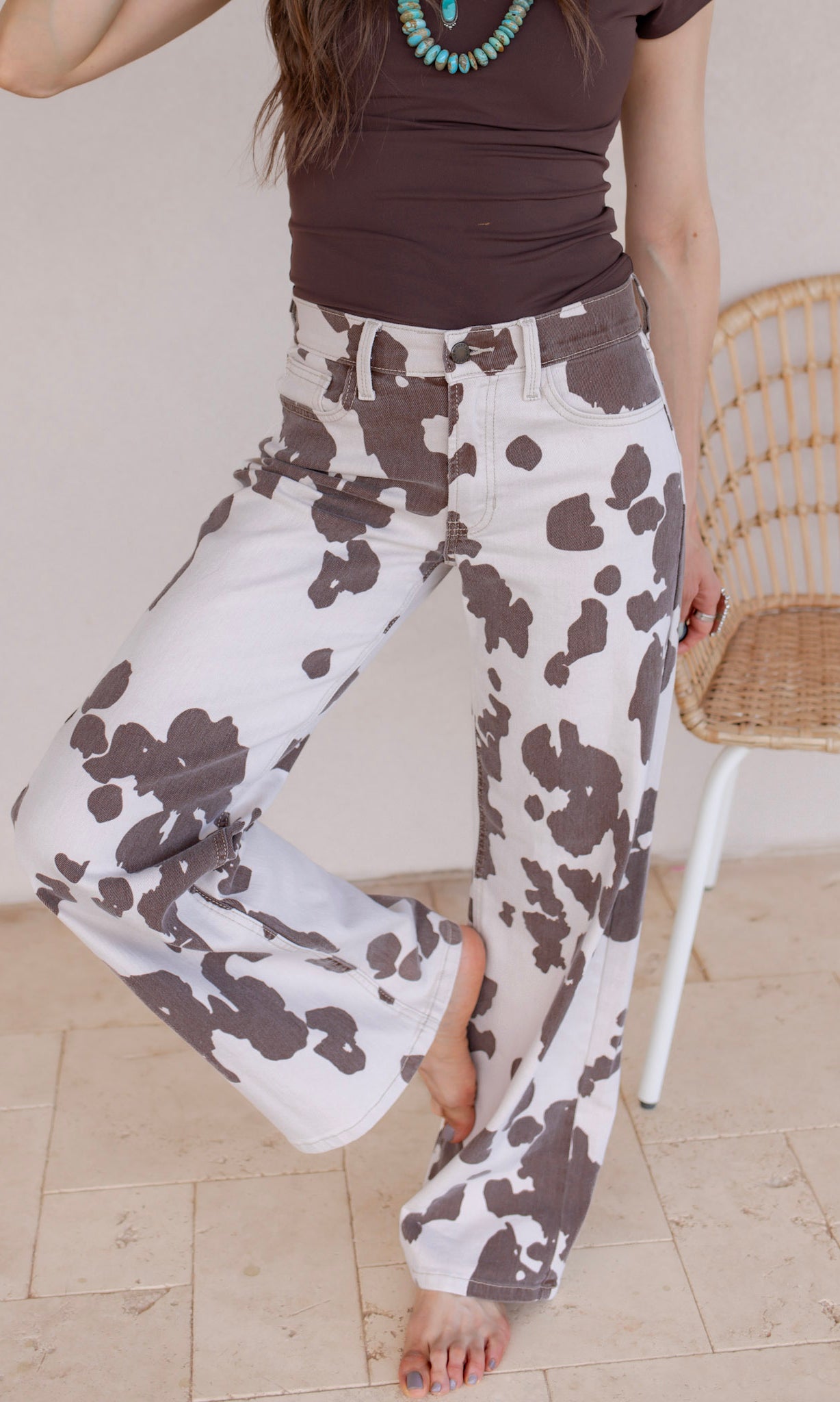 POL Leopard Printed Woven Wide Leg Drawstring Pants