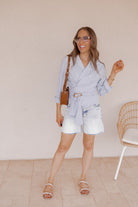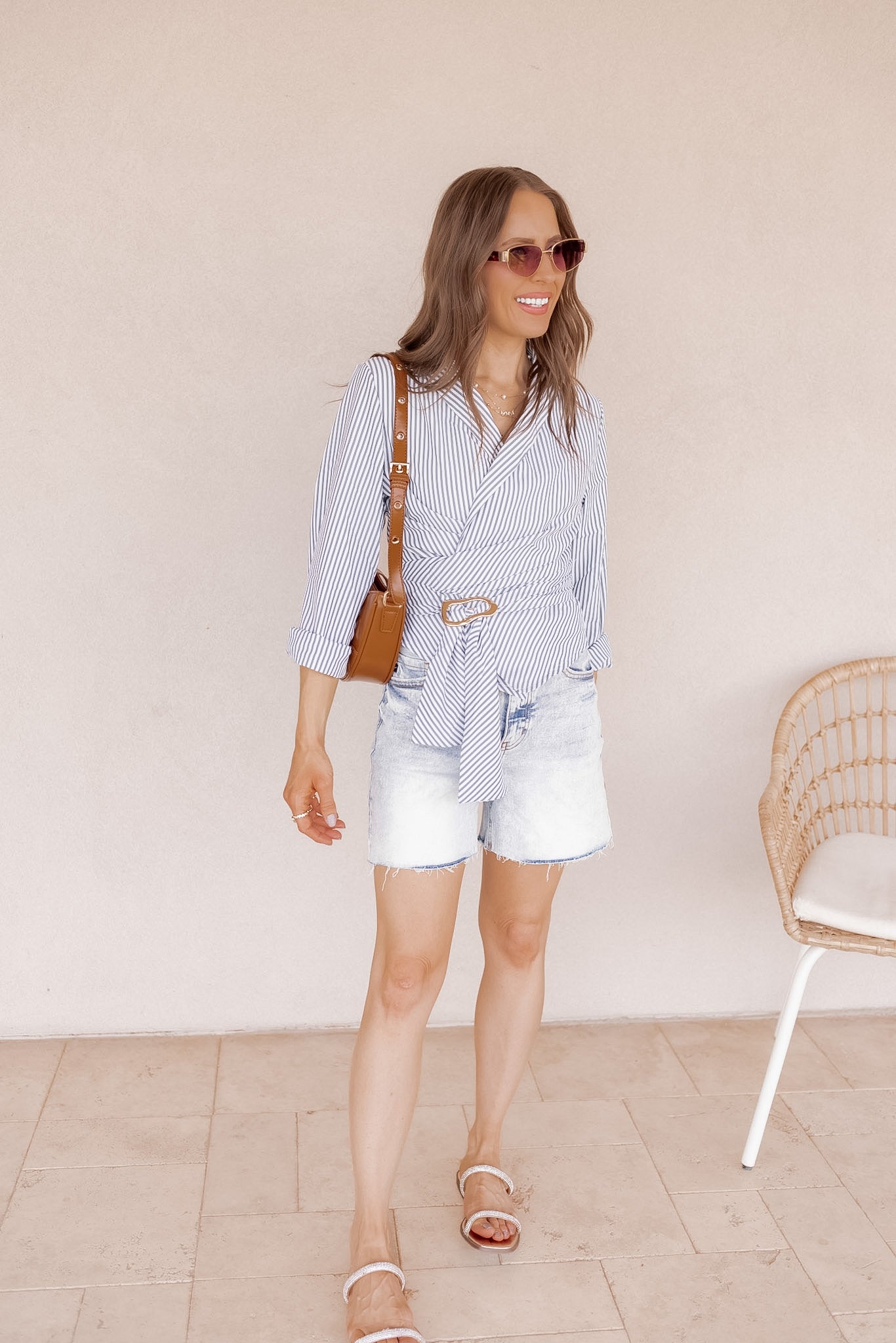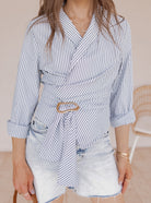 Polished, flattering, and effortlessly chic ✨ This striped wrap blouse is the perfect piece to elevate your everyday wardrobe. Designed with a tailored wrap silhouette and a statement belt detail, it creates a beautiful shape while still feeling comfortable and wearable.