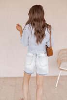 This blouse features a fitted wrap silhouette that cinches at the waist. If you are between sizes or prefer a slightly more relaxed fit, consider sizing up.