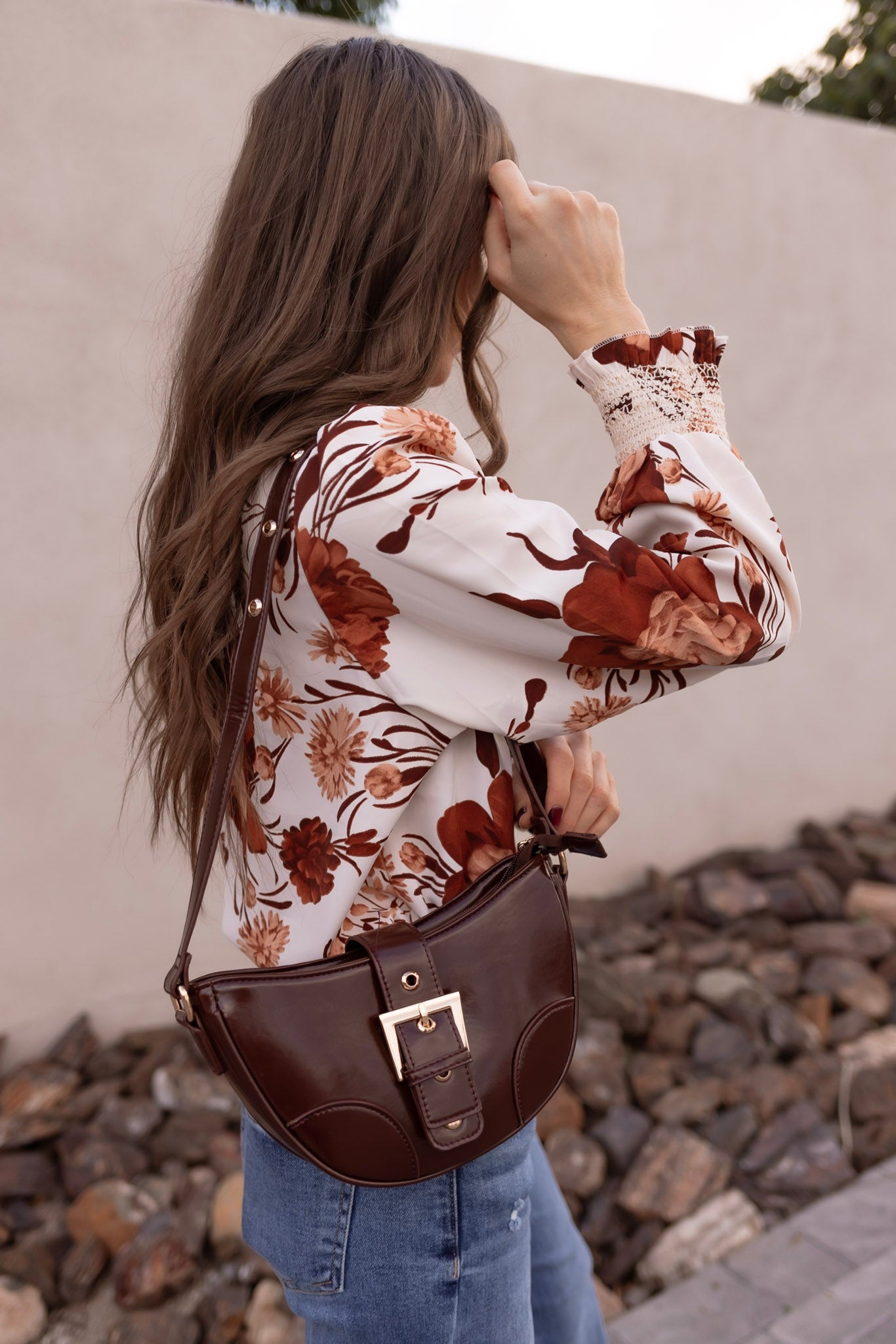 Style the Adelaide Shoulder Bag with denim and boots for a chic Western-inspired look, or pair it with a dress and layered jewelry for a polished, everyday outfit. Its structured shape and glossy finish make it the perfect accessory to elevate both casual and dressy looks.