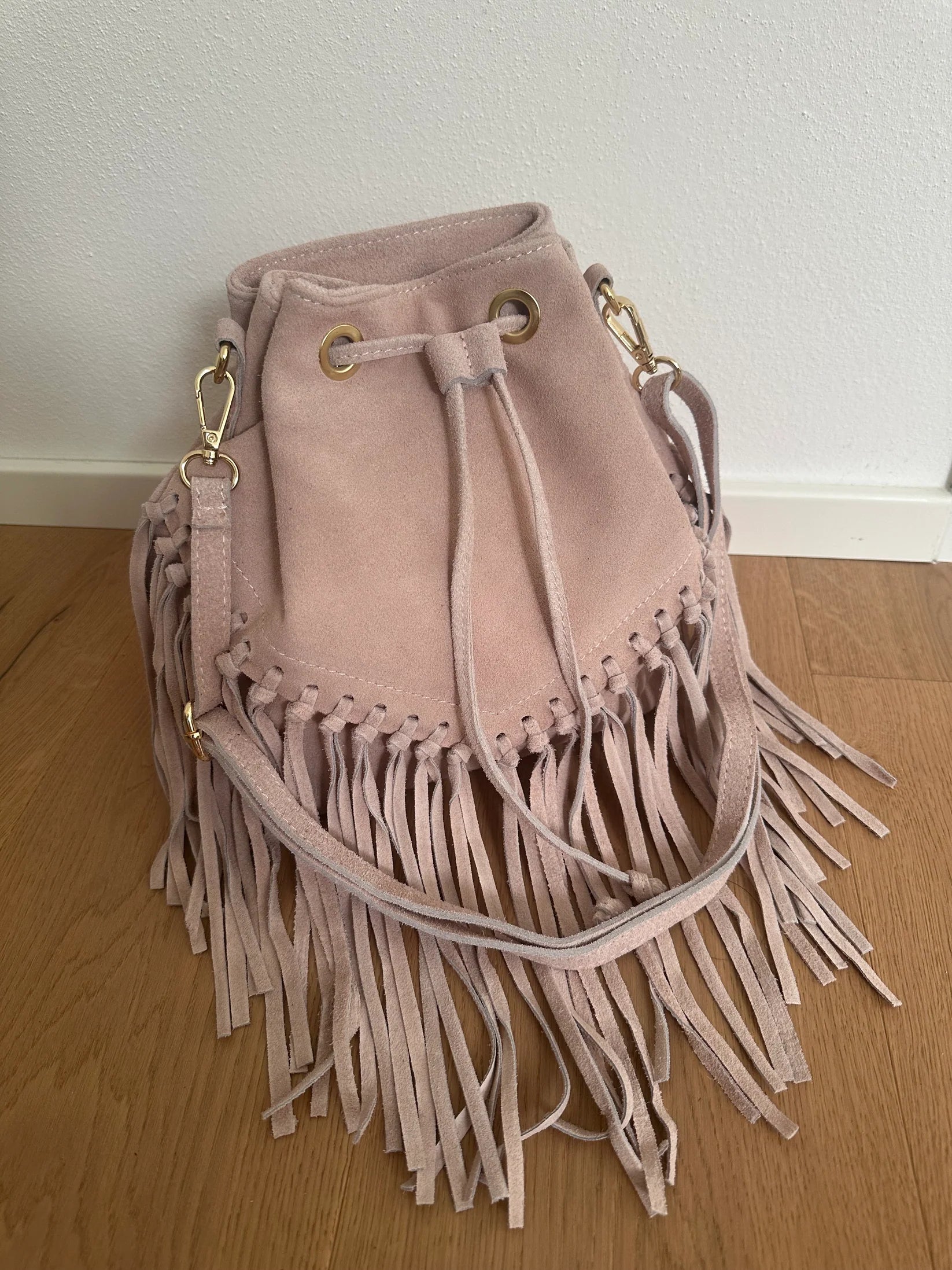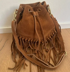 Suede Bucket Bag with Fringe
