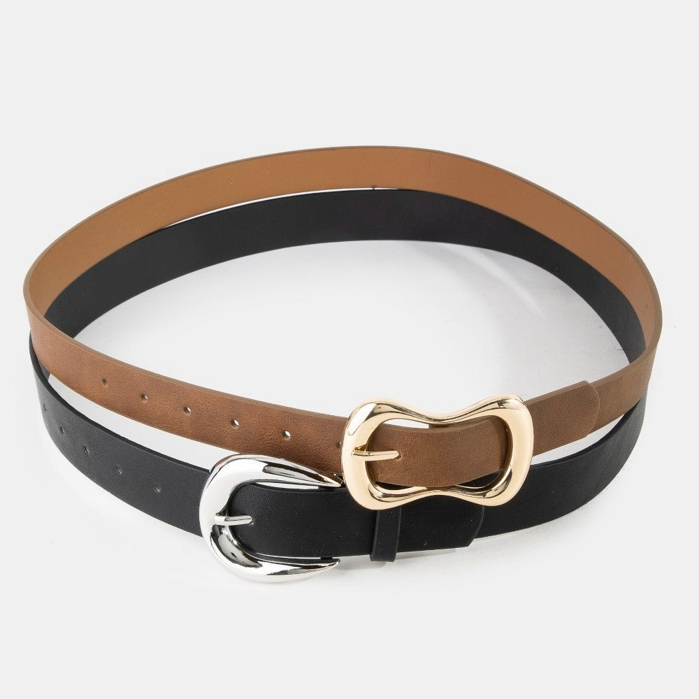 Vegan Leather Black & Brown Belt Set