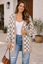 Brown Checkered Colorblock Cardigan – Casual Cool