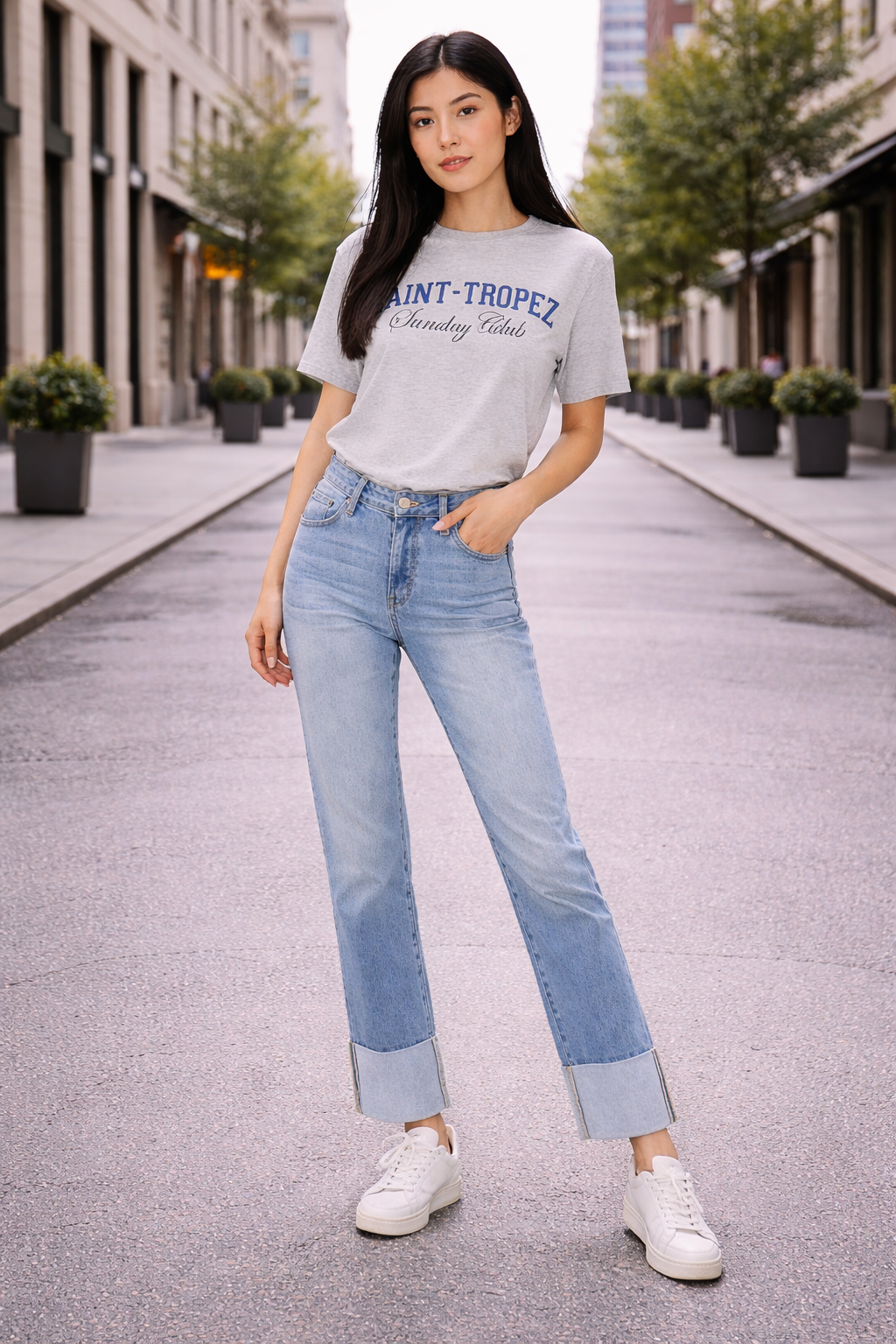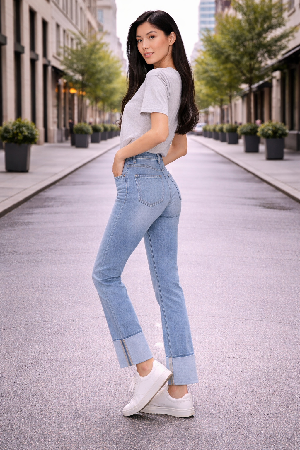 Pair these jeans with a fitted tank and sneakers for a casual, off-duty look, or dress them up with a blouse and heels for that effortless day-to-night vibe. The cuffed hem adds just the right amount of style without trying too hard.