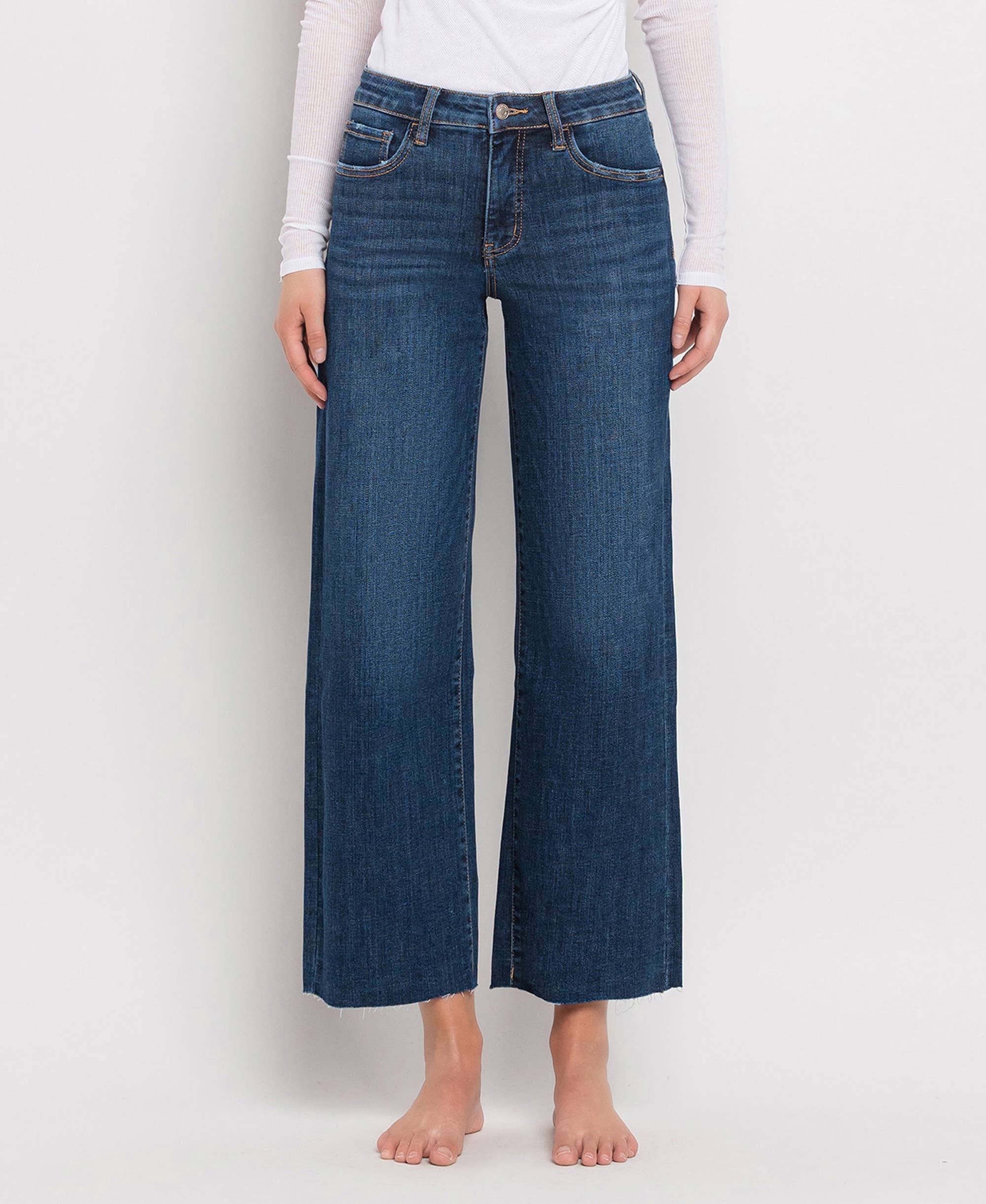 Tummy Control Mid Rise Dark Wash Wide Leg Jeans