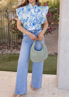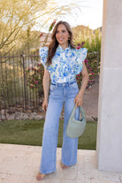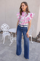 Forever Bloom Floral Print Ruffle Sleeve Blouse