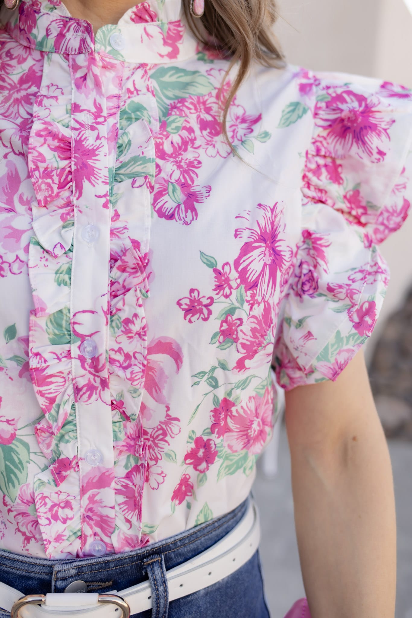 The Forever Bloom Floral Print Ruffle Sleeve Blouse is the perfect blend of soft femininity and everyday elegance. Designed with a delicate all-over floral pattern, this charming blouse features ruffle sleeves, a frilled neckline, and a classic button-up front that creates a polished yet romantic silhouette.