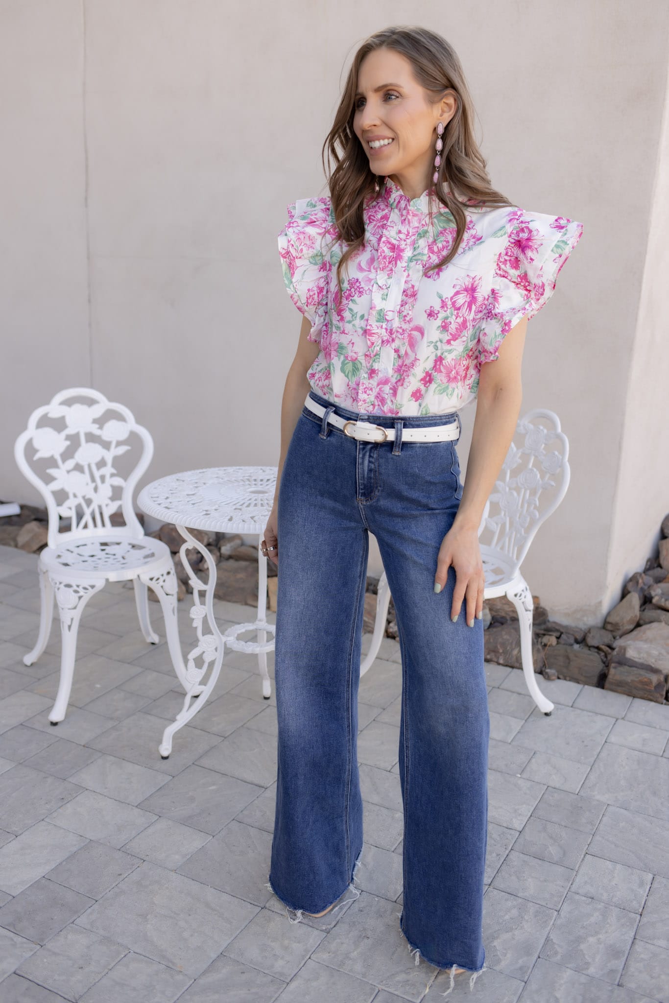 Style the Forever Bloom blouse with high-waisted denim and sandals for an effortless daytime outfit, or pair it with tailored trousers and heels for a polished office-ready look. The soft floral print and ruffle details make it perfect for brunch, workdays, or weekend outings.