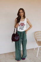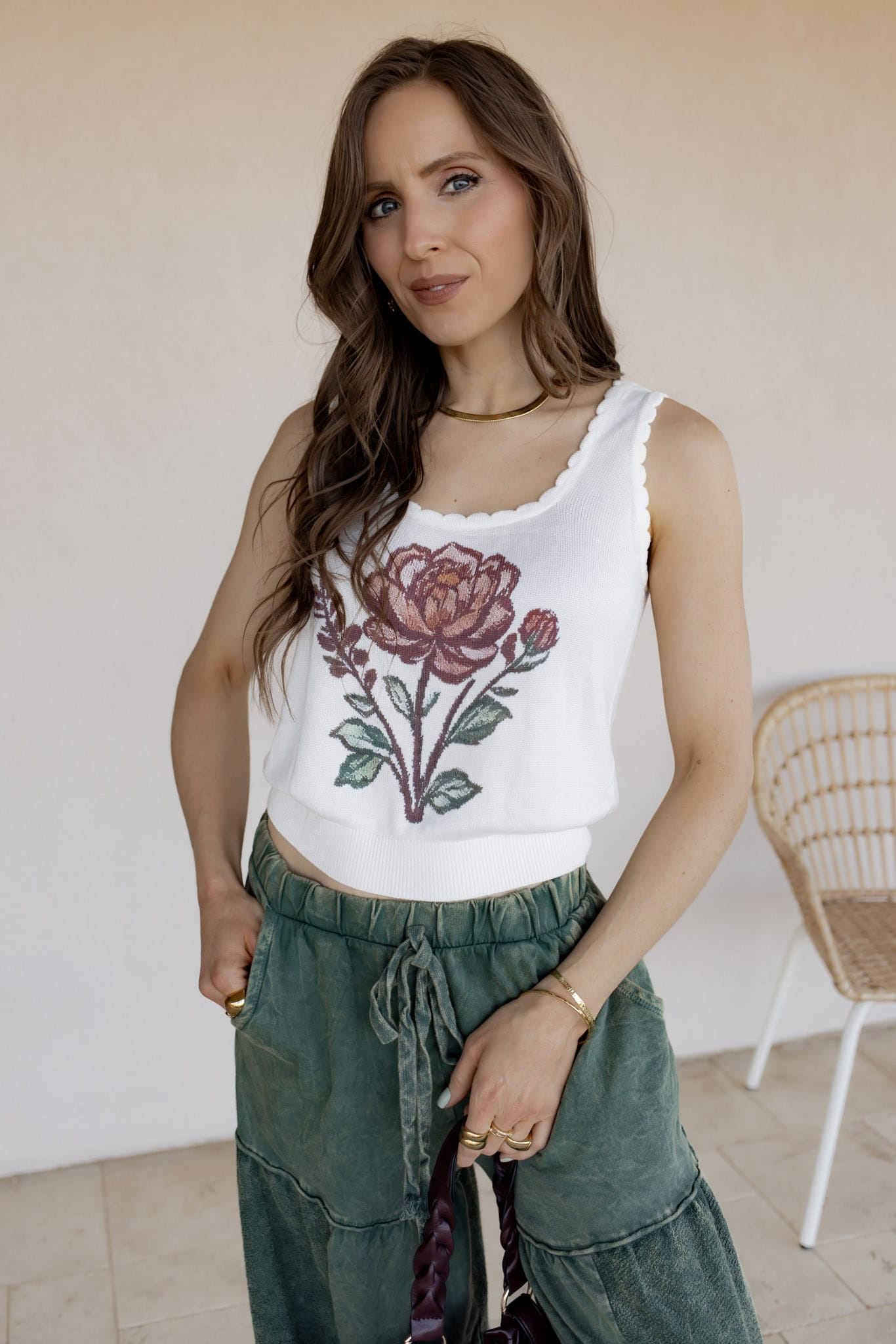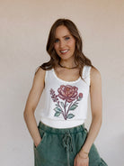 Retro Floral Print Scalloped Square Neck Tank