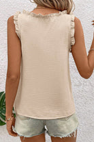 Elevate your summer wardrobe with this beautiful Soft Ruffle Trim Sleeveless Top, perfect for warm days and casual outings. The soft, light fabric offers a comfortable fit, while the charming ruffled detail along the neckline adds a feminine touch. This sleeveless top features a relaxed V-neck design, making it easy to pair with your favorite jeans or skirts for a laid-back yet stylish look.