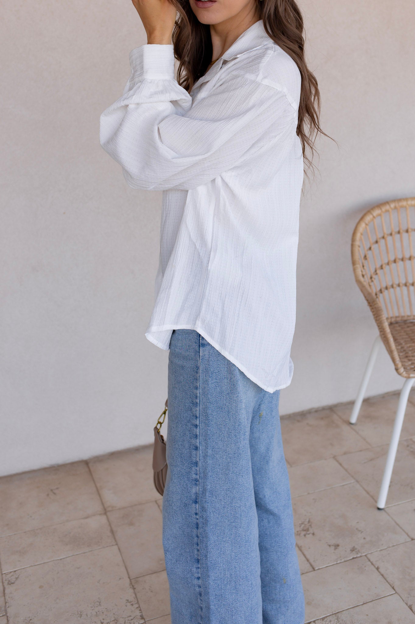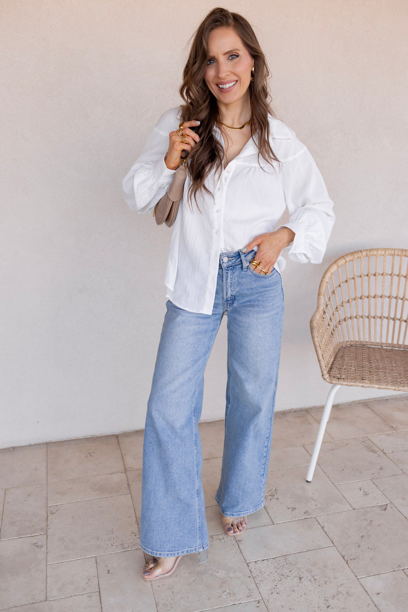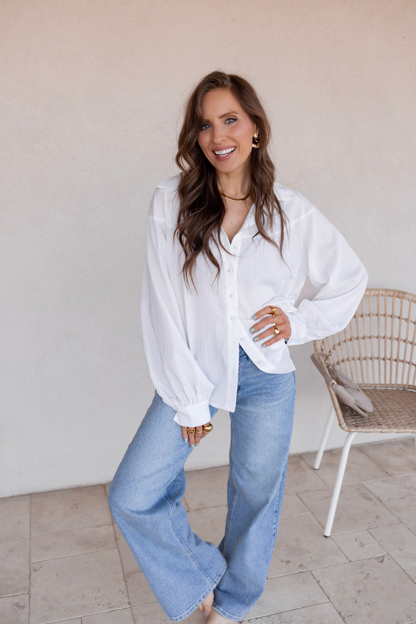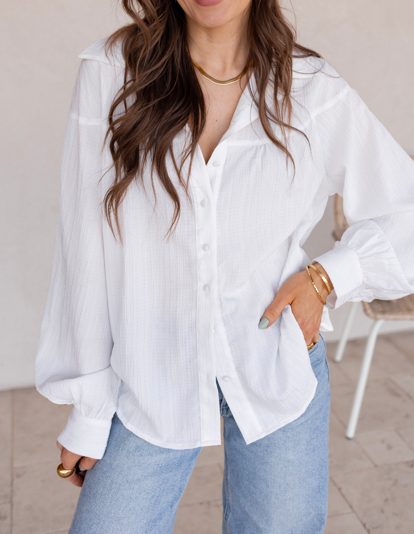 Effortlessly elevate your everyday style with the Let Loose Textured Lantern Sleeve Button Down. Designed with a breezy silhouette and soft textured fabric, this chic white blouse blends comfort with feminine detail. The statement lantern sleeves add a touch of volume and movement, while the relaxed fit makes it perfect for layering or wearing on its own. Lightweight, airy, and endlessly versatile—this is your go-to top for polished casual looks.