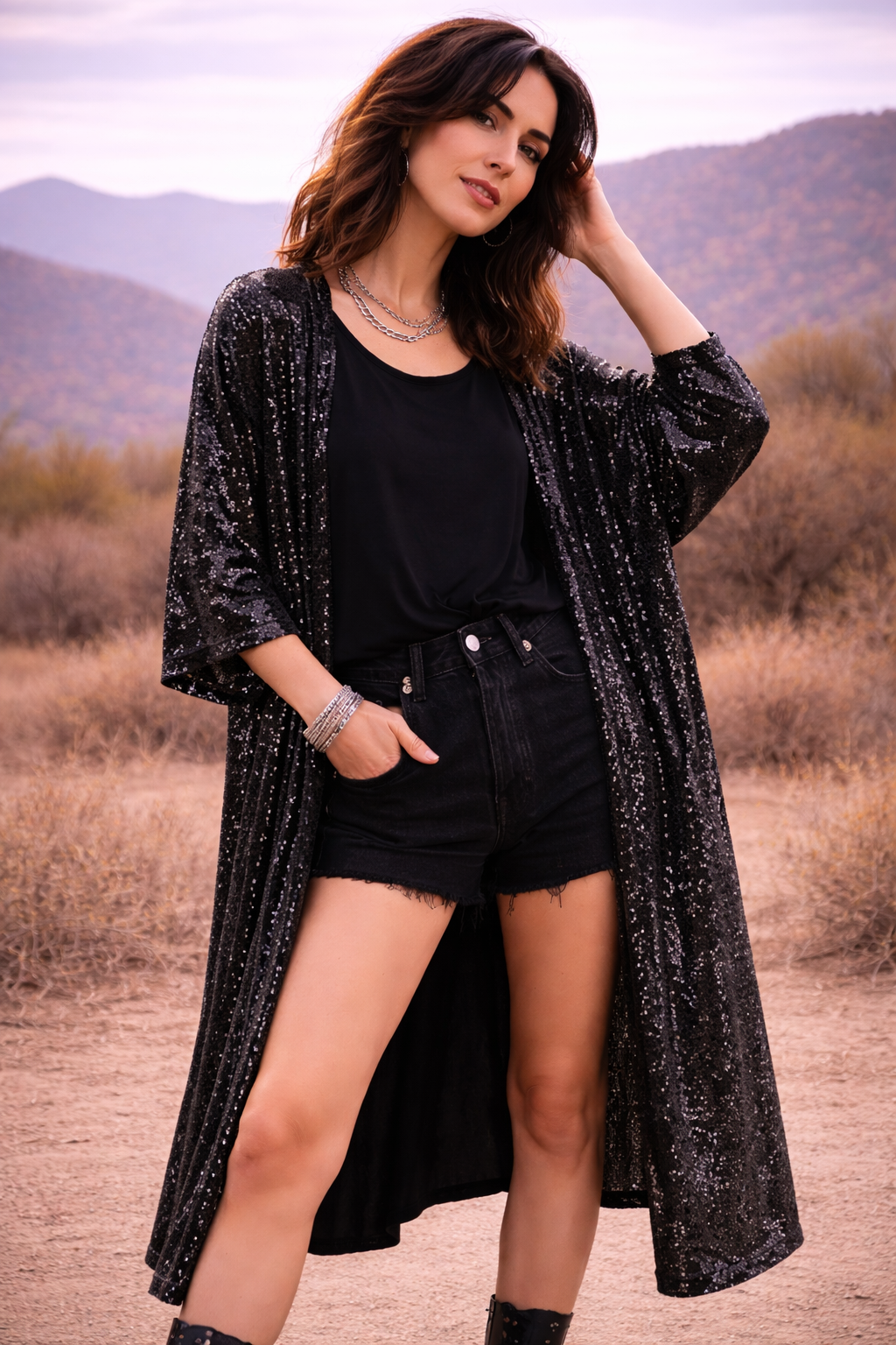 Sparkle Sequin Duster Kimono Cardigan