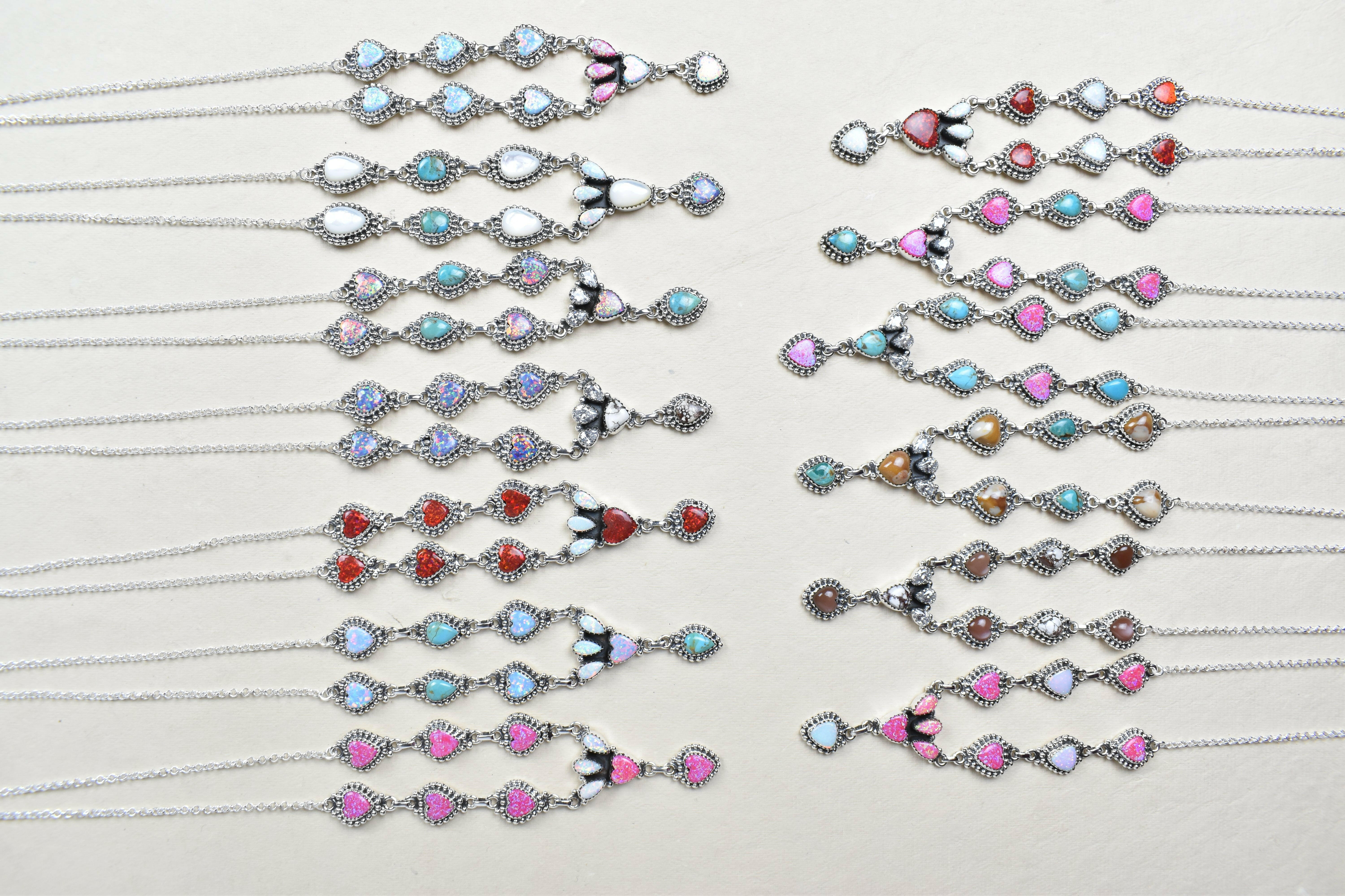 Add some ethereal elegance to your look with our stunning sterling silver necklace, available in 13 unique styles. Made from genuine sterling silver and featuring a multi stone lariat design, this necklace is the perfect addition to any outfit. Each piece comes beautifully packaged for gifting or safekeeping. Length ranges from 16-18".