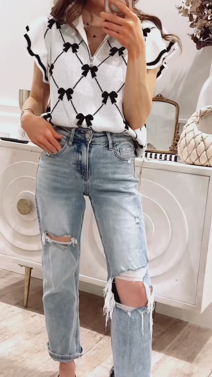 Elegant Grey Ribbed Knit Bow-Front Cardigan