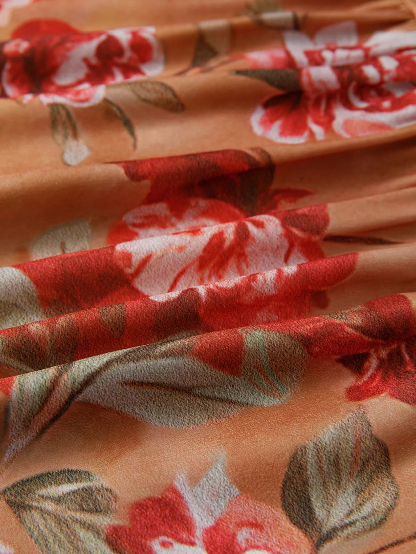 Embrace timeless sophistication with the Floral Print Half Button Flounce Sleeve Ruffle Mini Dress. This dress features a flattering V-neckline and a smocked bodice that cinches at the waist, creating a graceful silhouette. The midi length offers versatility, making it suitable for various occasions. The soft, breathable fabric ensures comfort, while the delicate print adds a touch of femininity. Whether you're attending a garden party, a brunch date, or a casual outing, this dress promises to keep you stylish and comfortable.