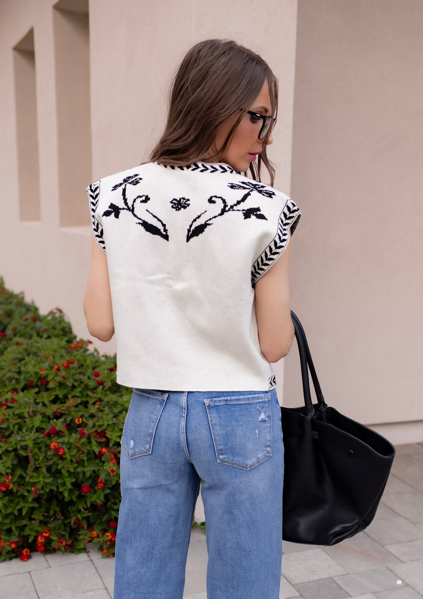 Floral Print Contrast Stitch Vest – Playful, Cozy, and Charming