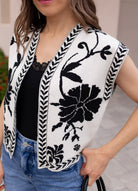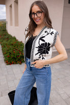 Don't miss out on this cozy and stylish Floral Print Contrast Stitch Vest. Order today and explore more fun and chic styles in our Vests Collection!