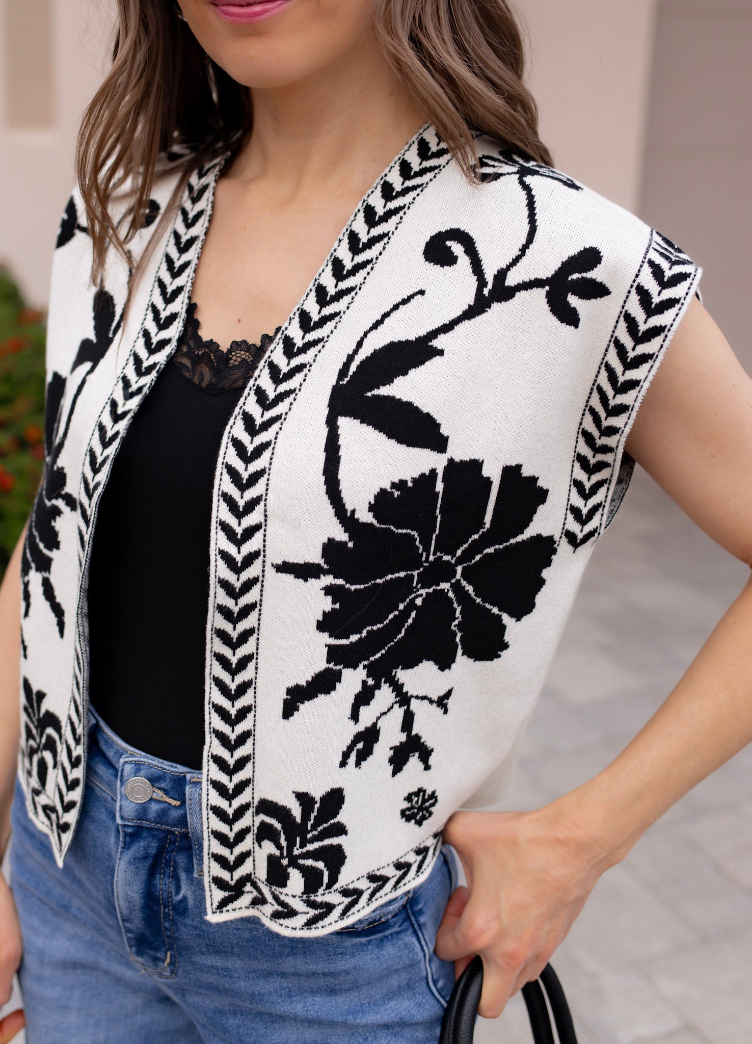 - Floral Print Design: Adds a whimsical touch to the classic vest, making it a standout piece.