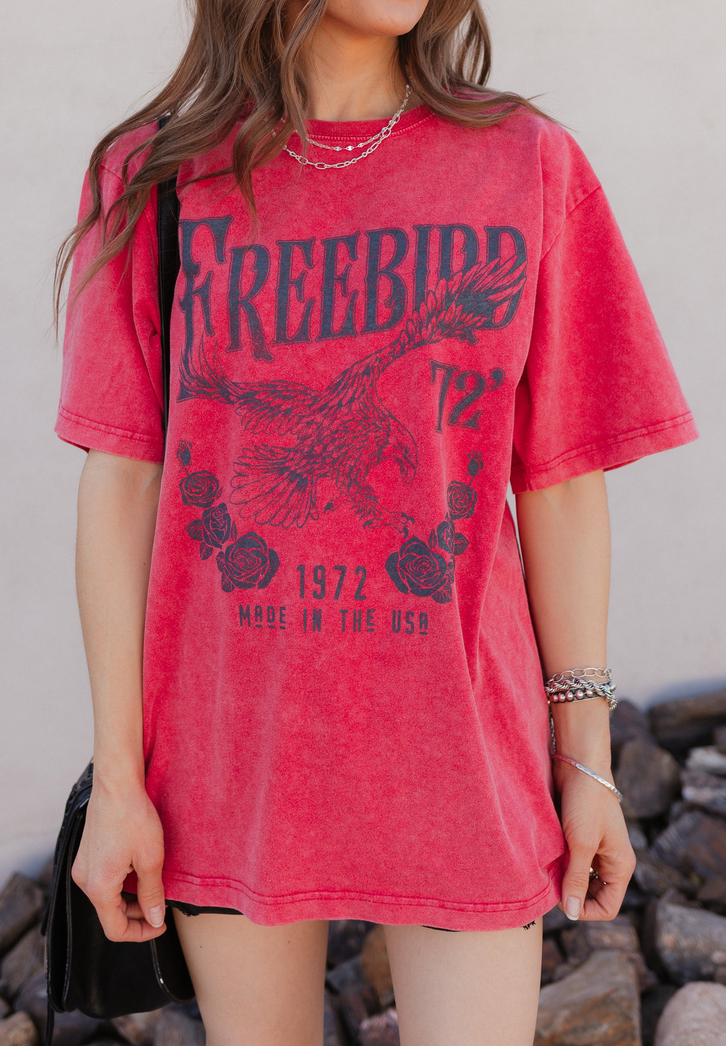 Free Bird 72 Vintage Graphic Washed Boyfriend Tee