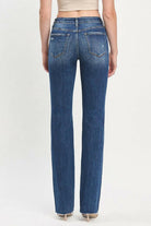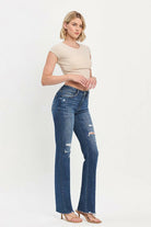 HIGH RISE RAW HEM BOOTCUT JEANS COMFORT STRETCH DENIM, HIGH RISE WAIST, DISTRESSED DETAIL, RAW HEM, FULL LENGTH, BOOTCUT JEANS