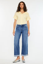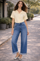 The High Rise Wide Leg Jeans are designed to give you that effortless, elongating silhouette with everyday comfort. Featuring a flattering 10" high-rise waist and a structured wide leg, these jeans create a balanced, polished shape. The dark wash keeps the look refined and easy to dress up or down, while the open side seam detail adds a subtle contemporary twist.