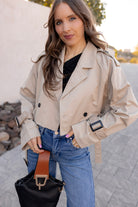 The Jet Set Trench Jacket is the perfect mix of modern style and versatile function. Order today to add this crop/hip-length trend piece to your wardrobe and explore more stylish tops and outerwear in our Top Collection!
