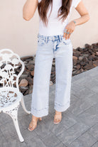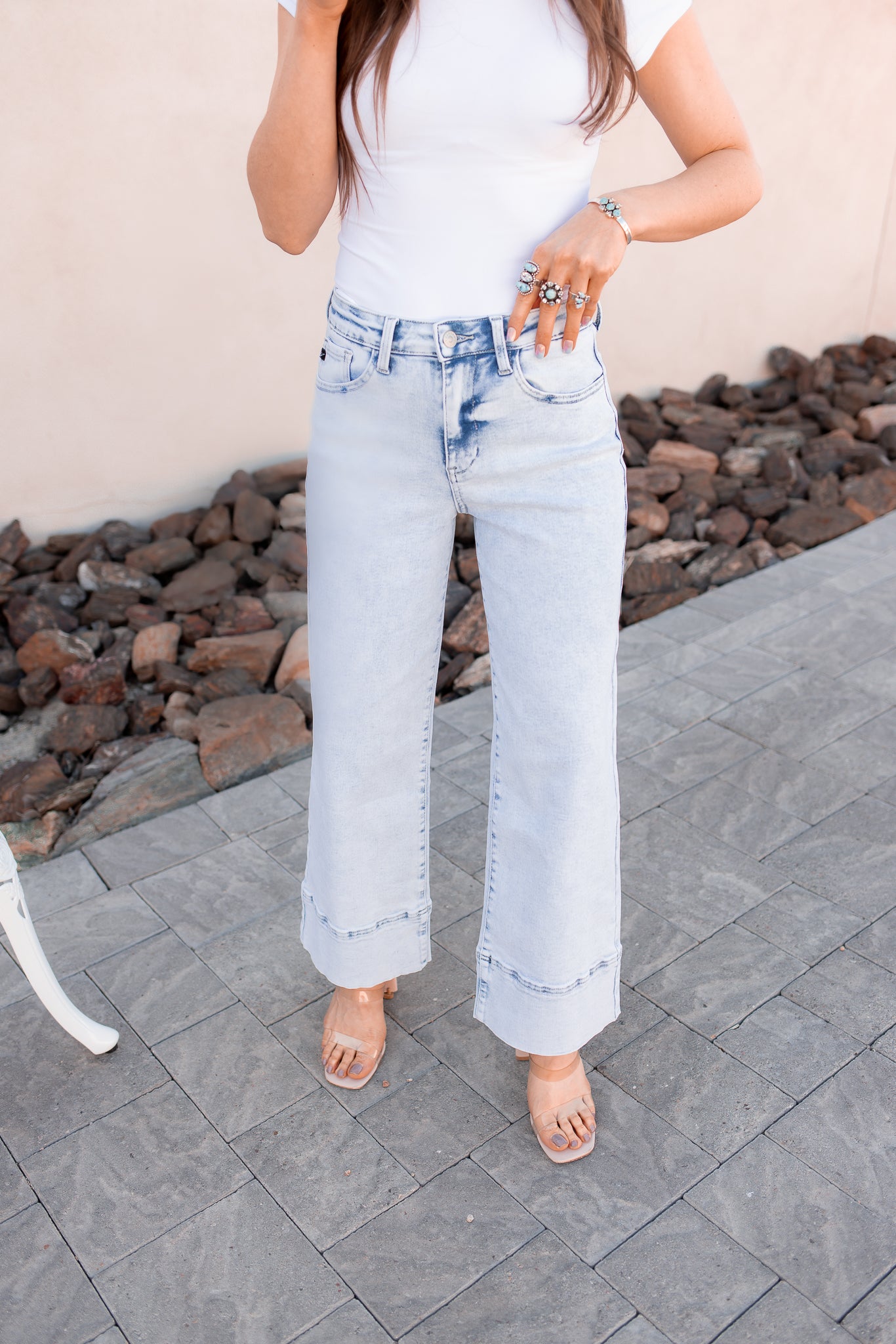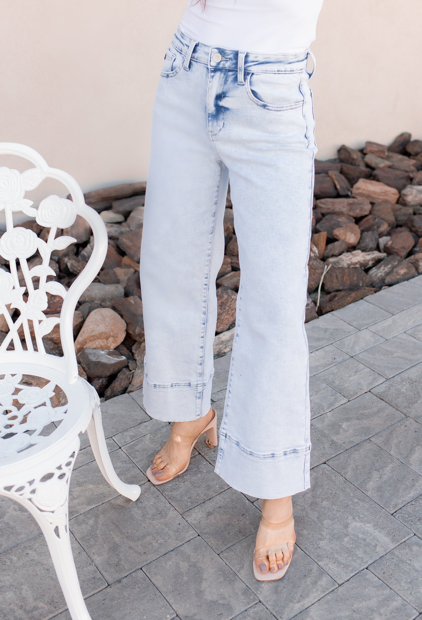 KANCAN Crater Cropped Wide Leg Jeans – Light Wash