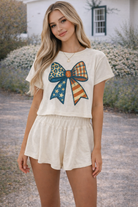 Leopard Flag Day Bow Print Loose Tee High Waist Skort Set