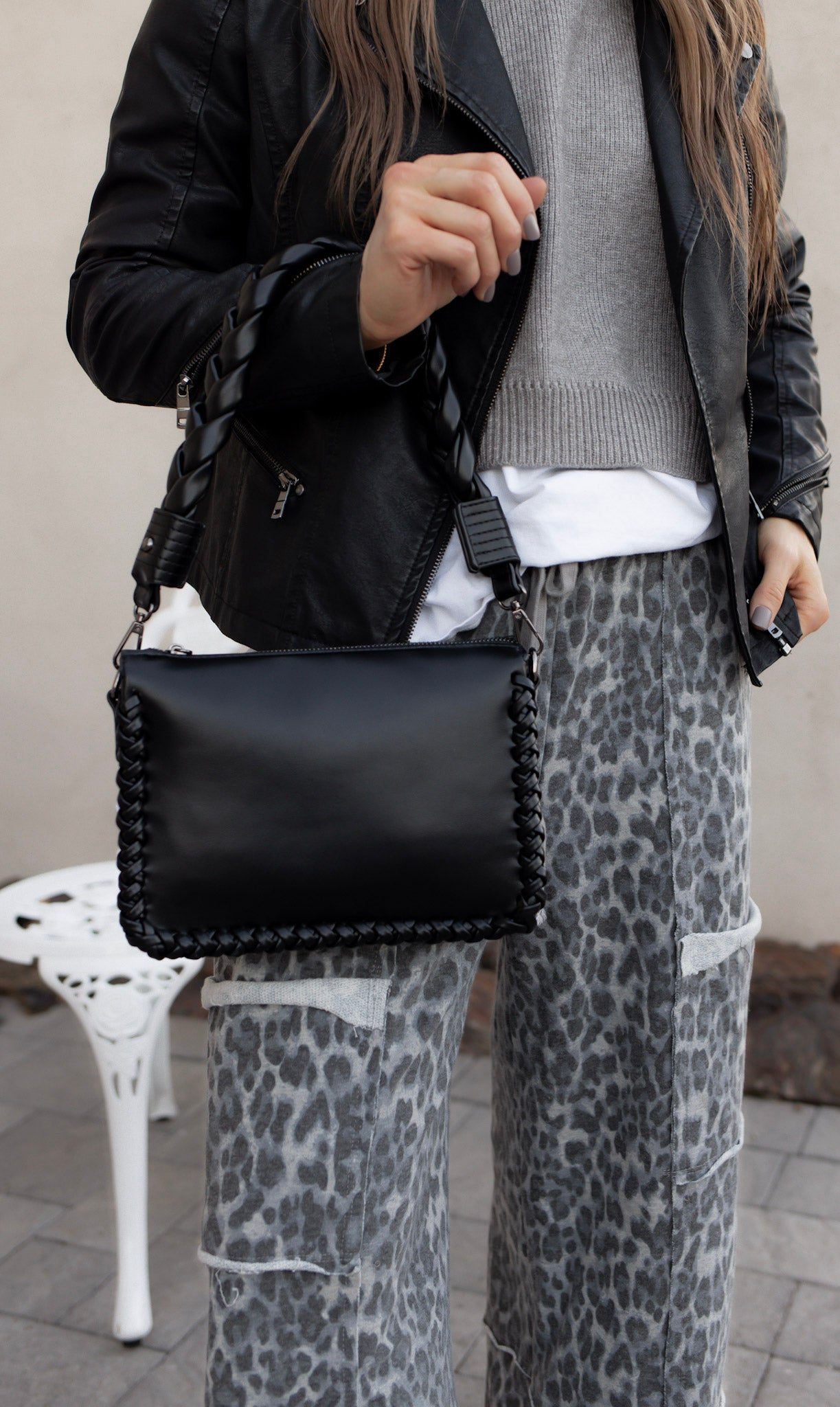 Elevate your accessory collection with the Judith Whipstitch Trim Shoulder Bag, designed for both style and functionality. This versatile shoulder bag is crafted from high-quality vegan leather, offering a sleek, eco-friendly alternative without compromising on style. Featuring a top zip closure for added security, this bag also includes a braided, removable handle and an adjustable shoulder strap for comfort and convenience. With three spacious compartments, it keeps your essentials organized, making it a perfect choice for everyday wear or a night out.