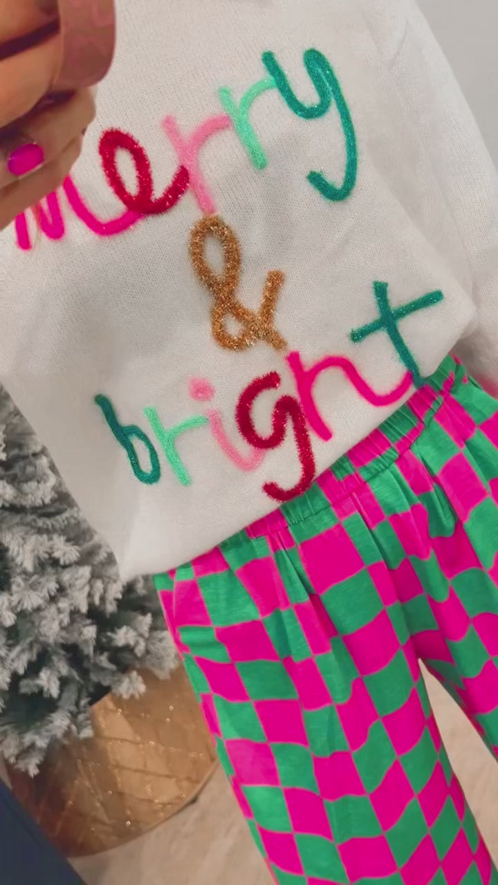 Get into the holiday spirit with our Merry Trees Lane Sequin Knit Sweater! Featuring vibrant “Merry” lettering in sparkling sequins across the chest and festive Christmas tree details down each sleeve, this sweater is all about adding joyful charm to your winter wardrobe. With its cozy knit fabric and comfortable crew neck design, it’s perfect for holiday parties or simply brightening up your casual looks. Soft, stylish, and full of cheer, this is a must-have piece for a truly merry season.