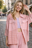Soft, stylish, and full of texture—this button down is everything! Featuring dreamy crochet patchwork panels, chest pockets, and a relaxed, oversized silhouette, it’s the perfect throw-on piece whether you're headed out or lounging in 🌸