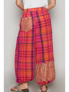 POL Plaid Pattern Raw Edge Woven Jogger Pants