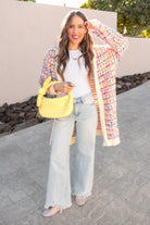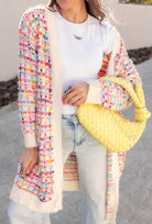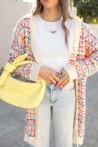 Brighten up your wardrobe with the Pop Of Color Long Cardigan, designed to add a playful, colorful touch to any outfit. Featuring a mix of vibrant hues woven throughout the soft, cozy fabric, this cardigan brings a burst of color to your daily style. Made from 100% acrylic, it offers both warmth and comfort, making it perfect for layering over your favorite tops or dresses. Whether you're lounging at home or heading out, this cardigan will keep you stylish and cozy.