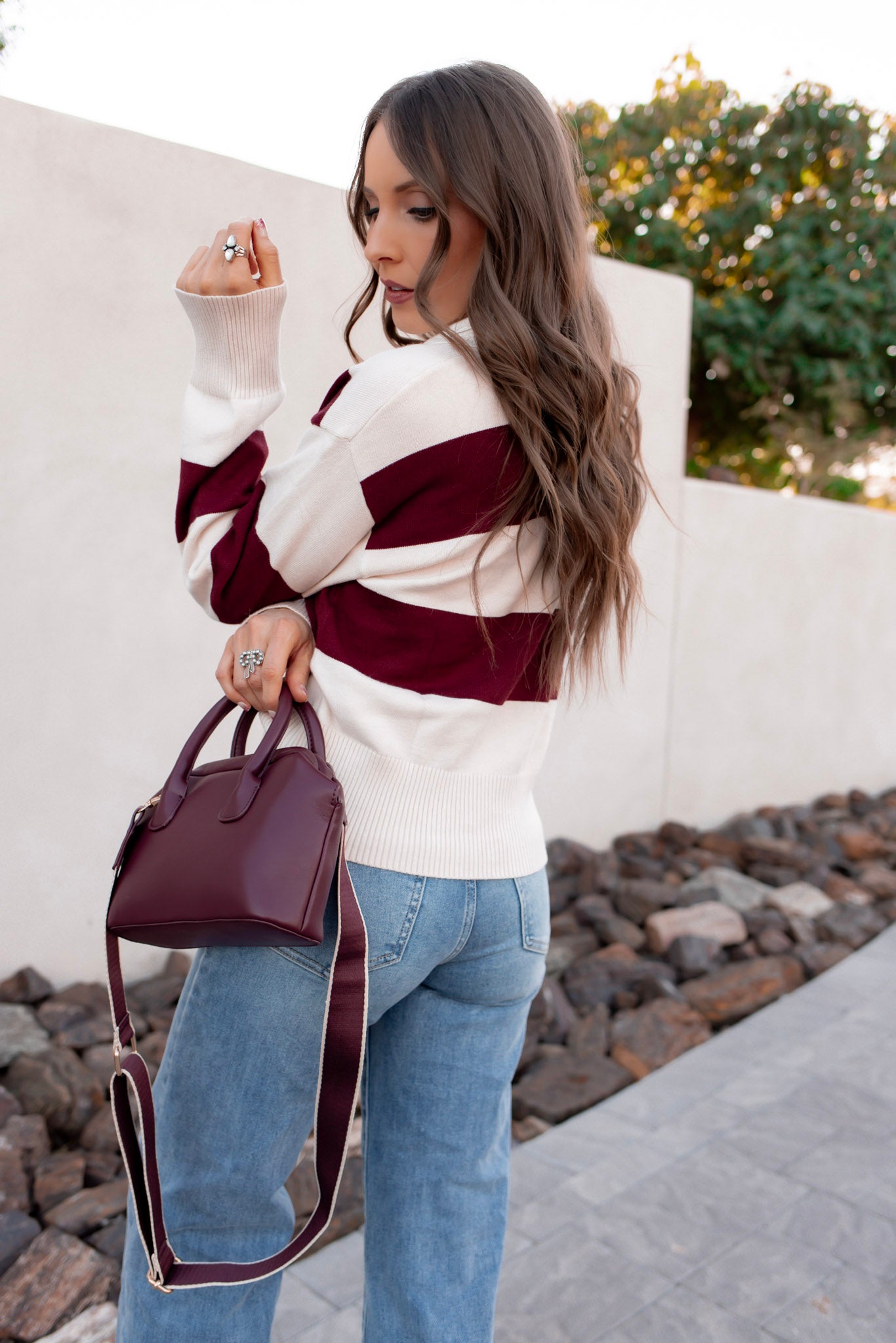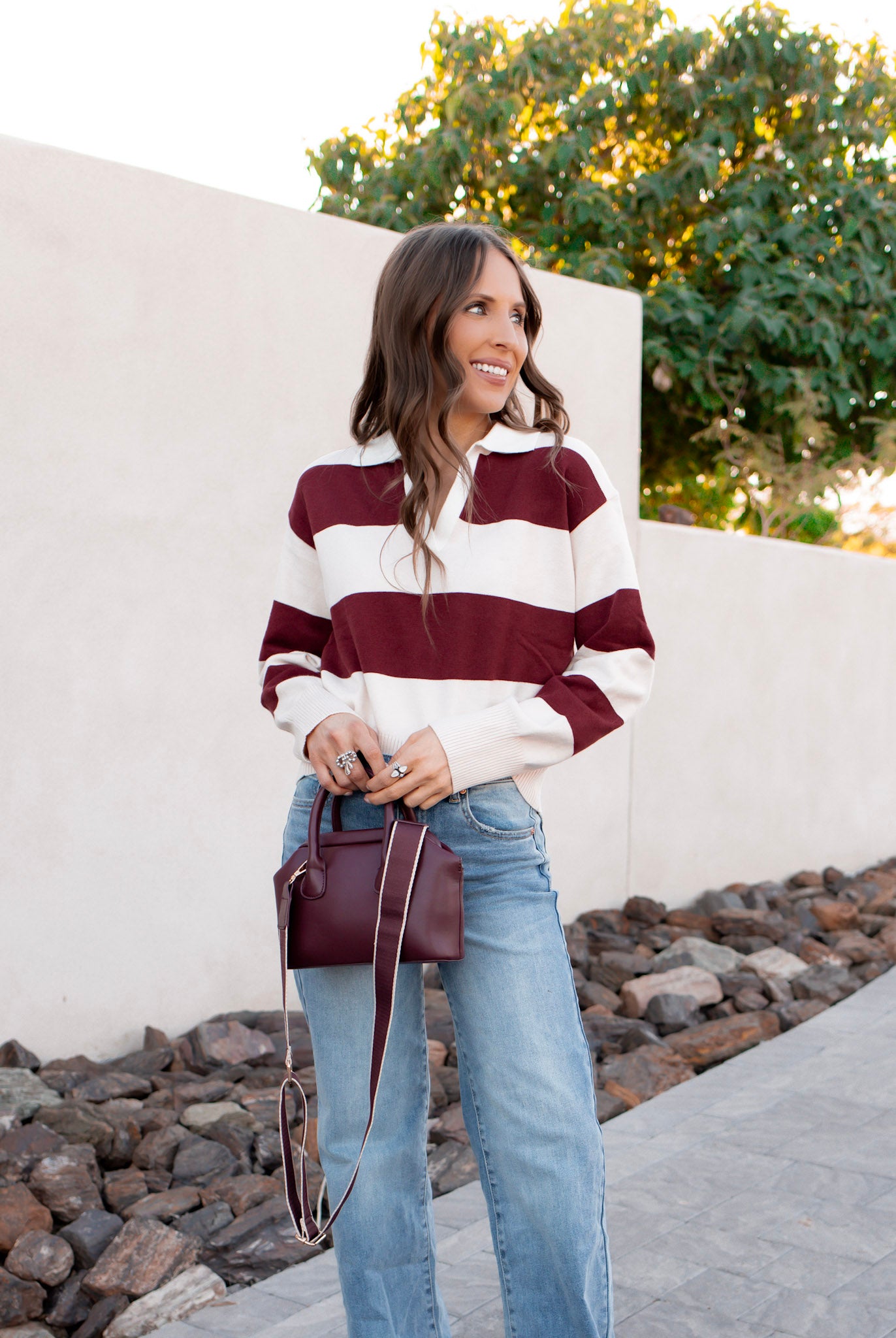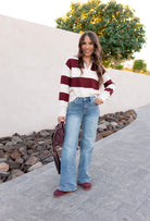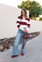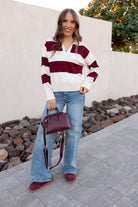Classic meets cozy in this brown color block sweater, featuring a structured polo collar and ribbed trim for a tailored finish. The soft knit and earthy tones bring a grounded, Western-boho vibe, while the relaxed fit makes it perfect for layering. Whether you're styling it with denim, boots, or a maxi skirt, this sweater adds a touch of retro charm to your cold-weather rotation.