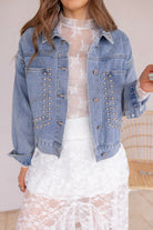 Studded Denim Jacket – Women's Light Wash Statement Jacket