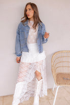 Perfect for layering over dresses, tees, or lace tops, this jacket adds effortless cool to both casual and dressed-up looks. Whether you're heading out for brunch, date night, or a weekend event, this piece is guaranteed to make a statement.