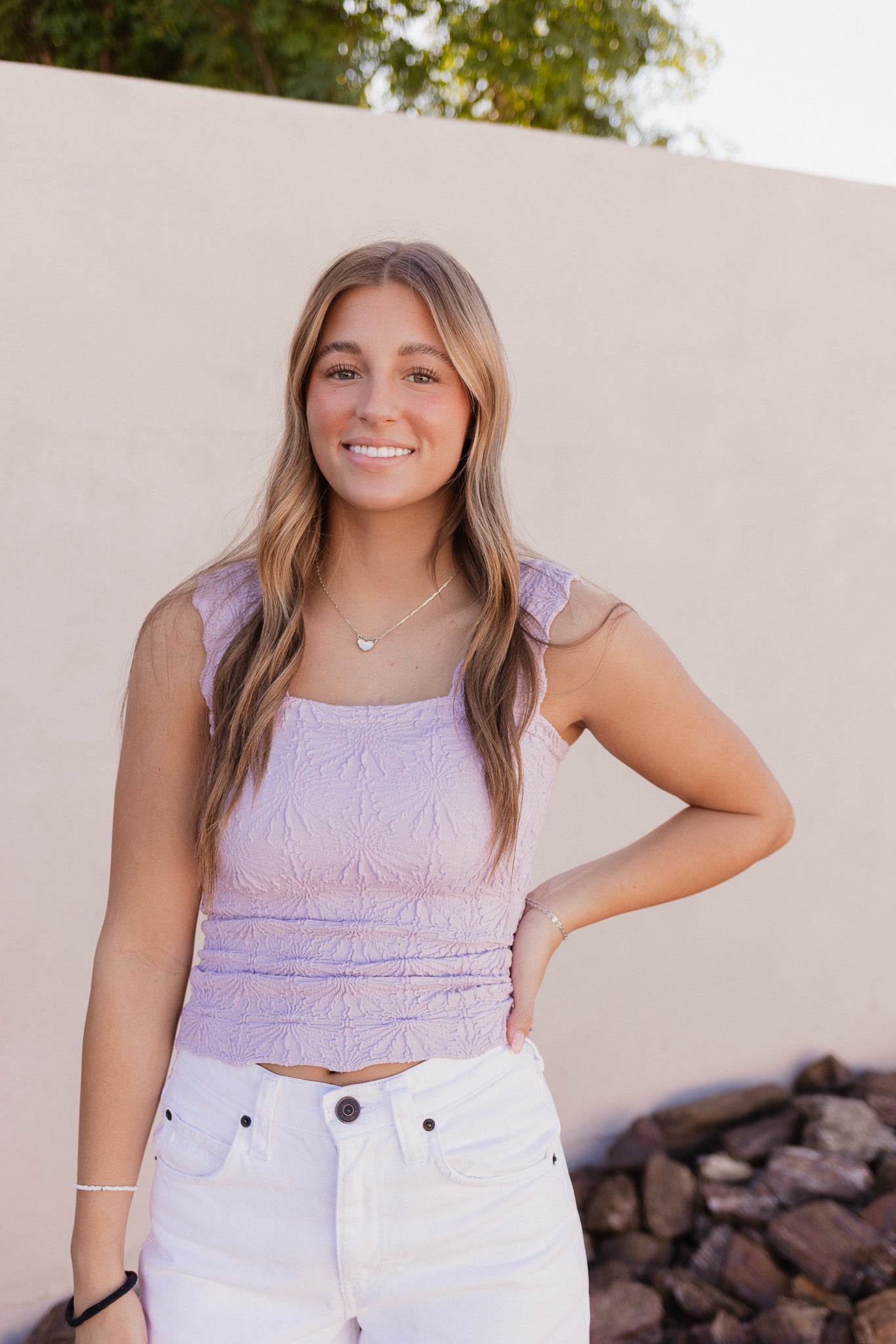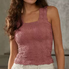Say hello to your new favorite layering piece—this chic, textured jacquard tank top brings the perfect mix of stretch, comfort, and style! Featuring wide straps and a flattering square neckline, it's perfect solo or paired under your fave shacket or cardi.