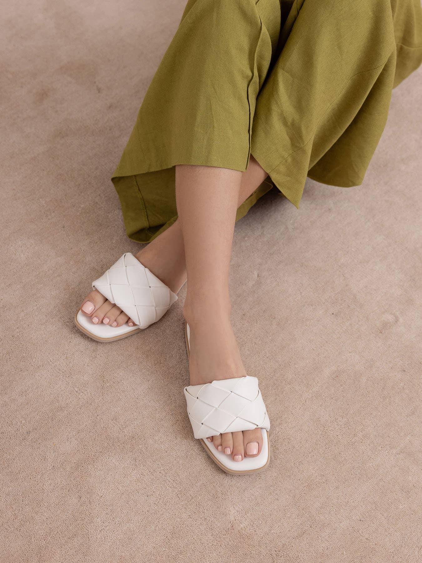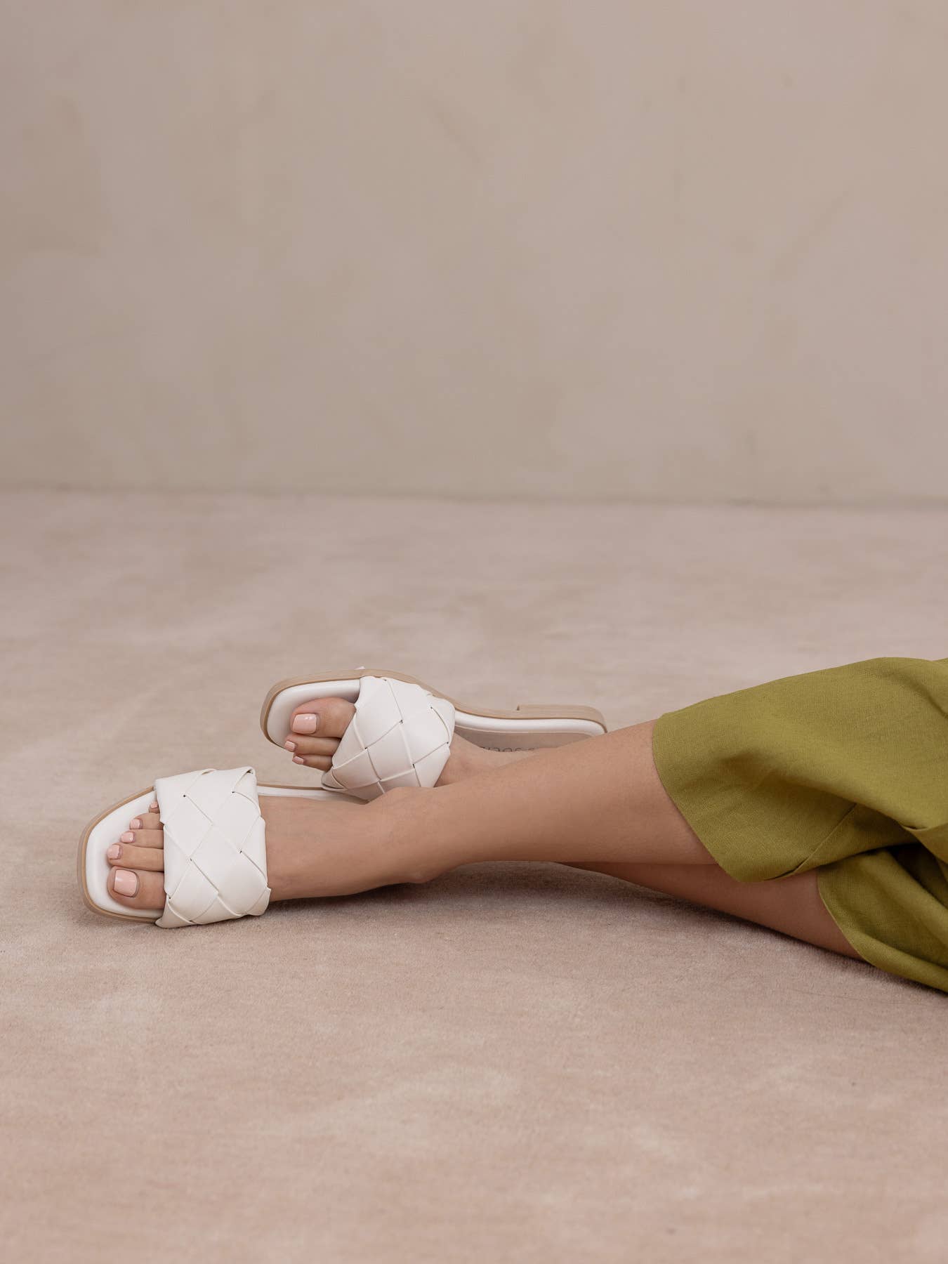 The Darla White Woven Slide Sandal is minimalism at its finest. Designed with a softly structured woven strap and a sleek, refined silhouette, this slide delivers effortless sophistication with every step.