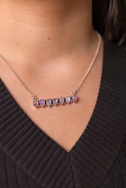 Set your style to sparkle with the Set the Bar High Sterling Silver Necklace—a stunning piece that’s bound to turn heads and elevate your jewelry collection! This enchanting necklace features a sleek bar design adorned with real stones, set in real sterling silver for a look that’s chic, sophisticated, and absolutely radiant. Whether you're dressing up for a night out or adding a little shine to your everyday look, this necklace will have you glowing in no time. ✨💎