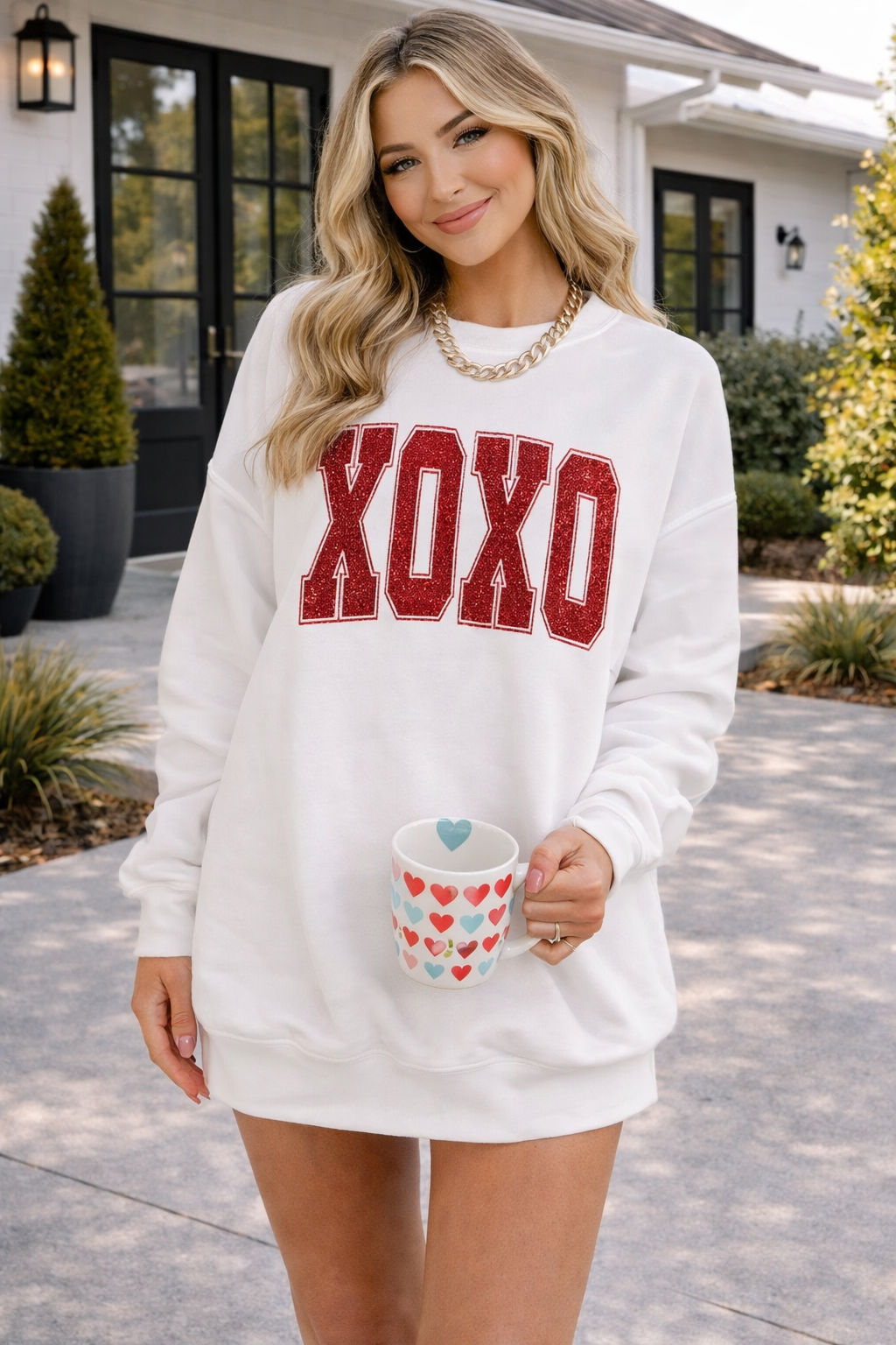 White Glitter XOXO Graphic Crewneck Valentines Pullover Sweatshirt